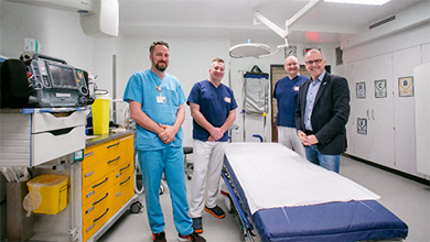 Erweiterte Möglichkeiten Nach der Fertigstellung des Hubschrauberlandeplatzes im Juni 2018 ist damit der nächste Schritt der Modernisierung des EV vollzogen worden. Und es ist ein großer Schritt: Die neue ZNA wird nach der kompletten Fertigstellung etwa viermal so groß wie die alte sein. Sie verfügt über drei spezielle Schockräume für die Behandlung schwerverletzter oder kritisch erkrankter Patienten. Diese sind nun direkt an die Computertomographie angebunden und ermöglichen dadurch eine deutlich schnellere Diagnostik. Außerdem gibt es – wie von den Berufsgenossenschaften gefordert – zwei weitere Eingriffsräume, in denen auch Notoperationen vorgenommen werden können. Neben dieser „High-care-unit“ zur Versorgung von Schwerkranken entsteht noch eine „Low-care-unit“ als weitere Einheit für ambulante Patienten.