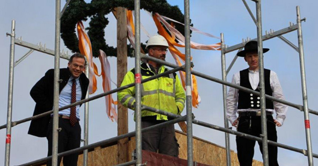 Seit dem 11.11.2021 weht der Richtkranz über dem neuen Werkstatt- und Lagerbereich von DR. FONTHEIM auf dem Gelände des ehemaligen NP-Marktes in Liebenburg. Leider konnte aufgrund der Corona-Pandemie nur eine kleine Feier mit wenigen Teilnehmern stattfinden, ganz auf ein Richtfest sollte aber auch nicht verzichtet werden. Mit der Fertigstellung des Rohbaus ist ein wichtiger Meilenstein erreicht, über die Wintermonate kann nun der Innenausbau erfolgen.